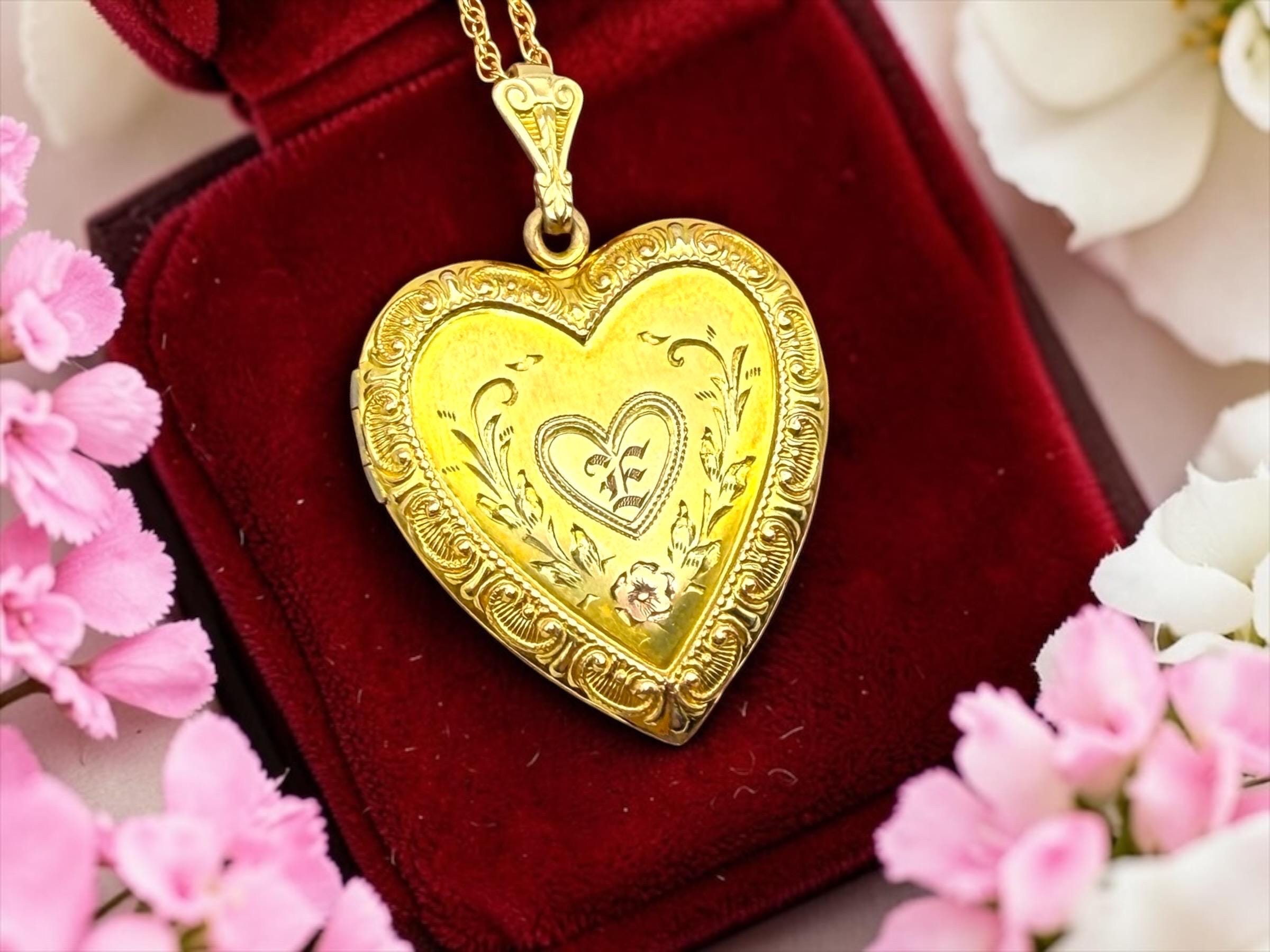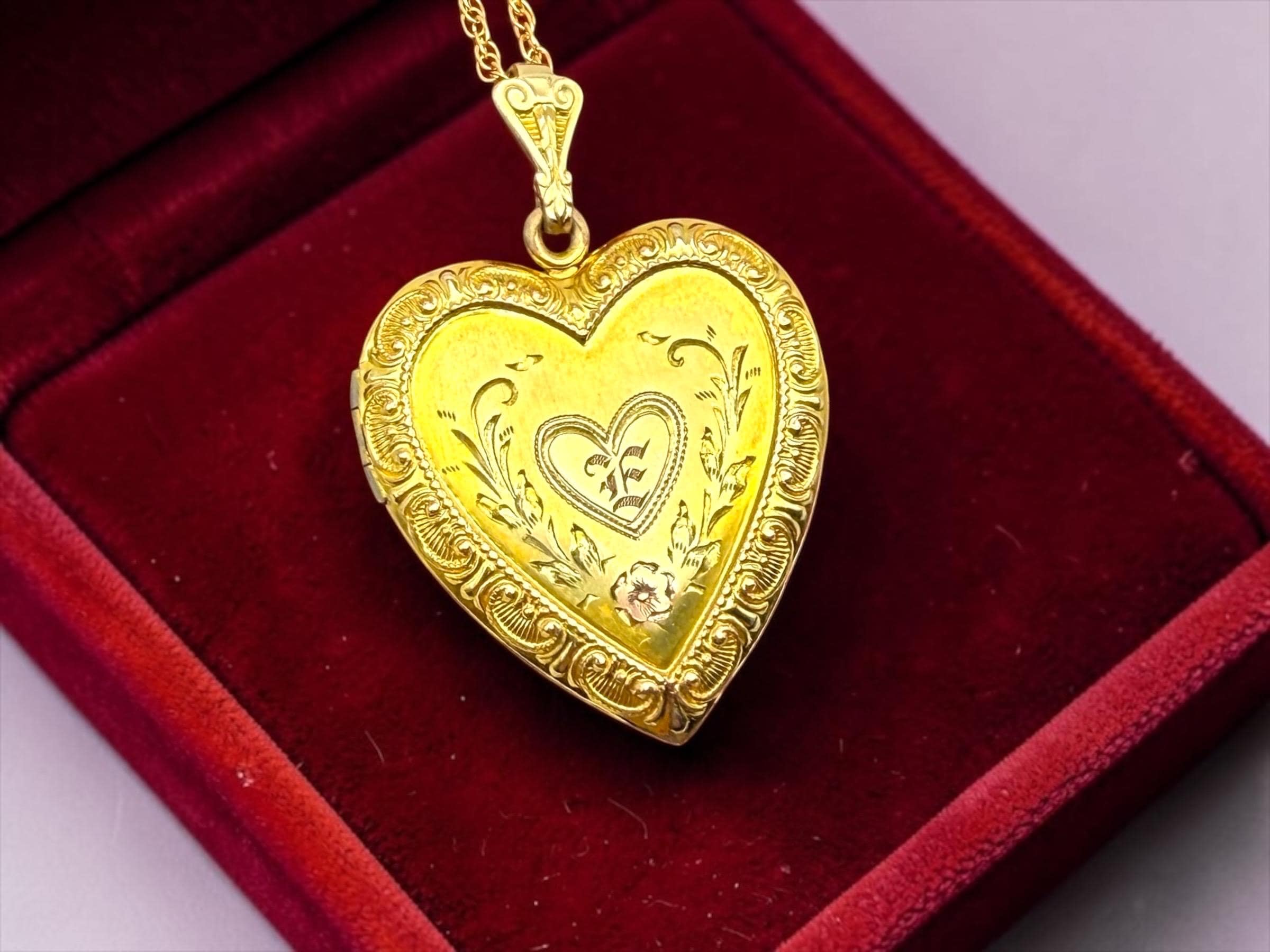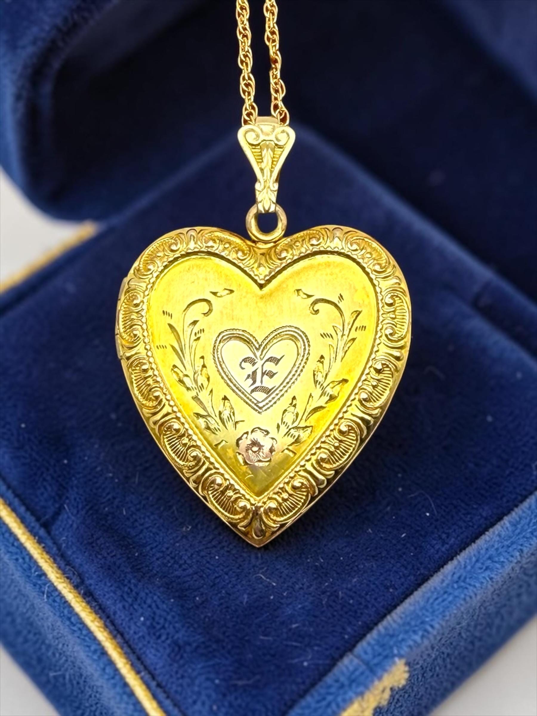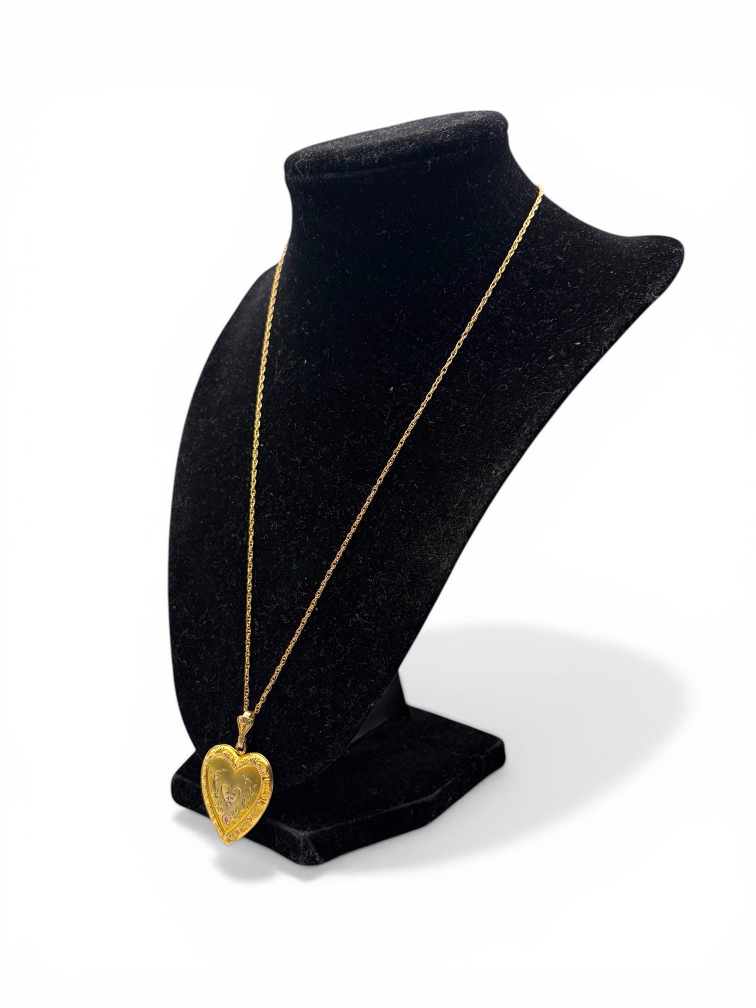 Vintage 12K Gold Filled Heart Locket Necklace – Etched Floral Monogram E, WH Hallmark