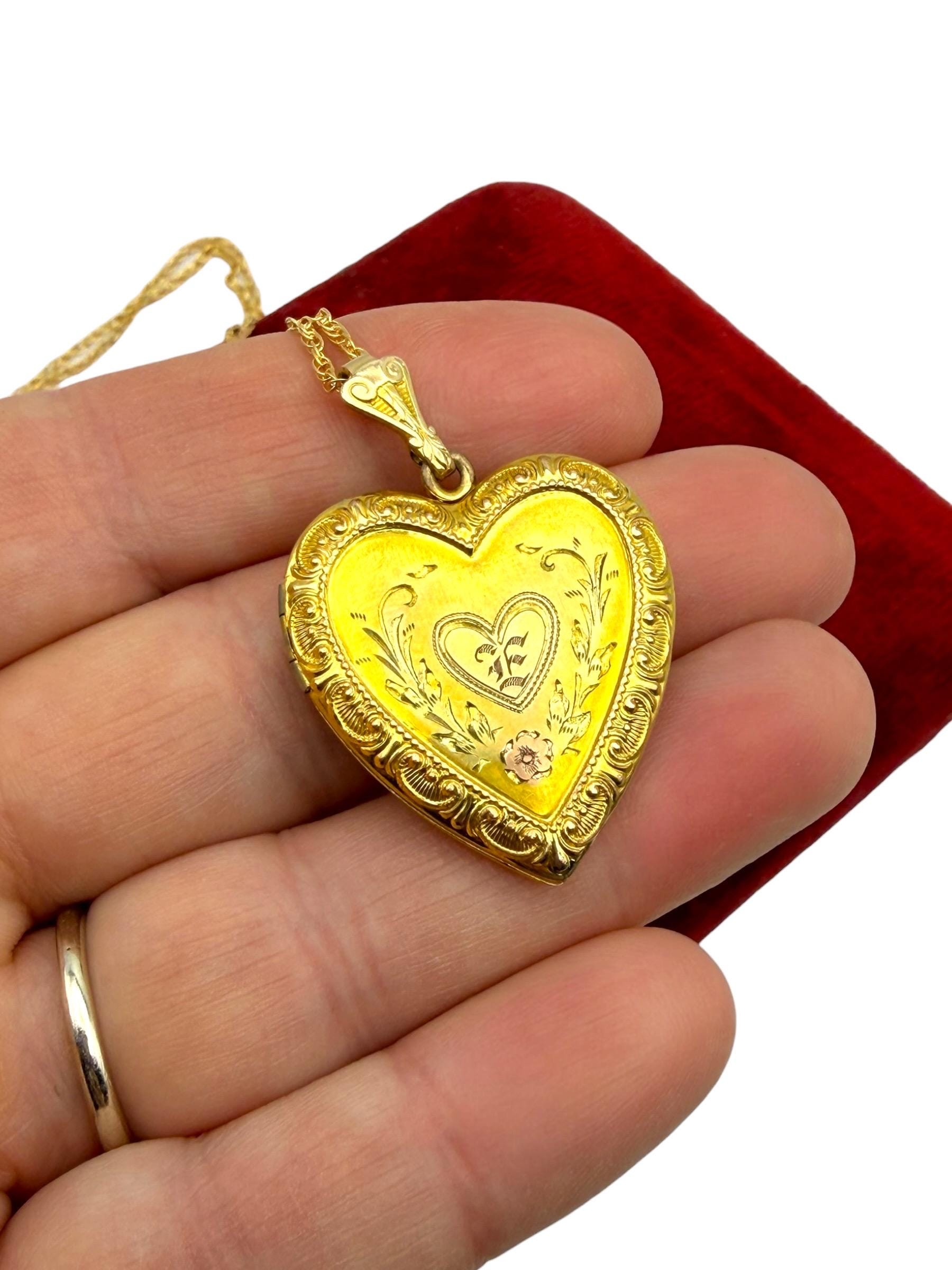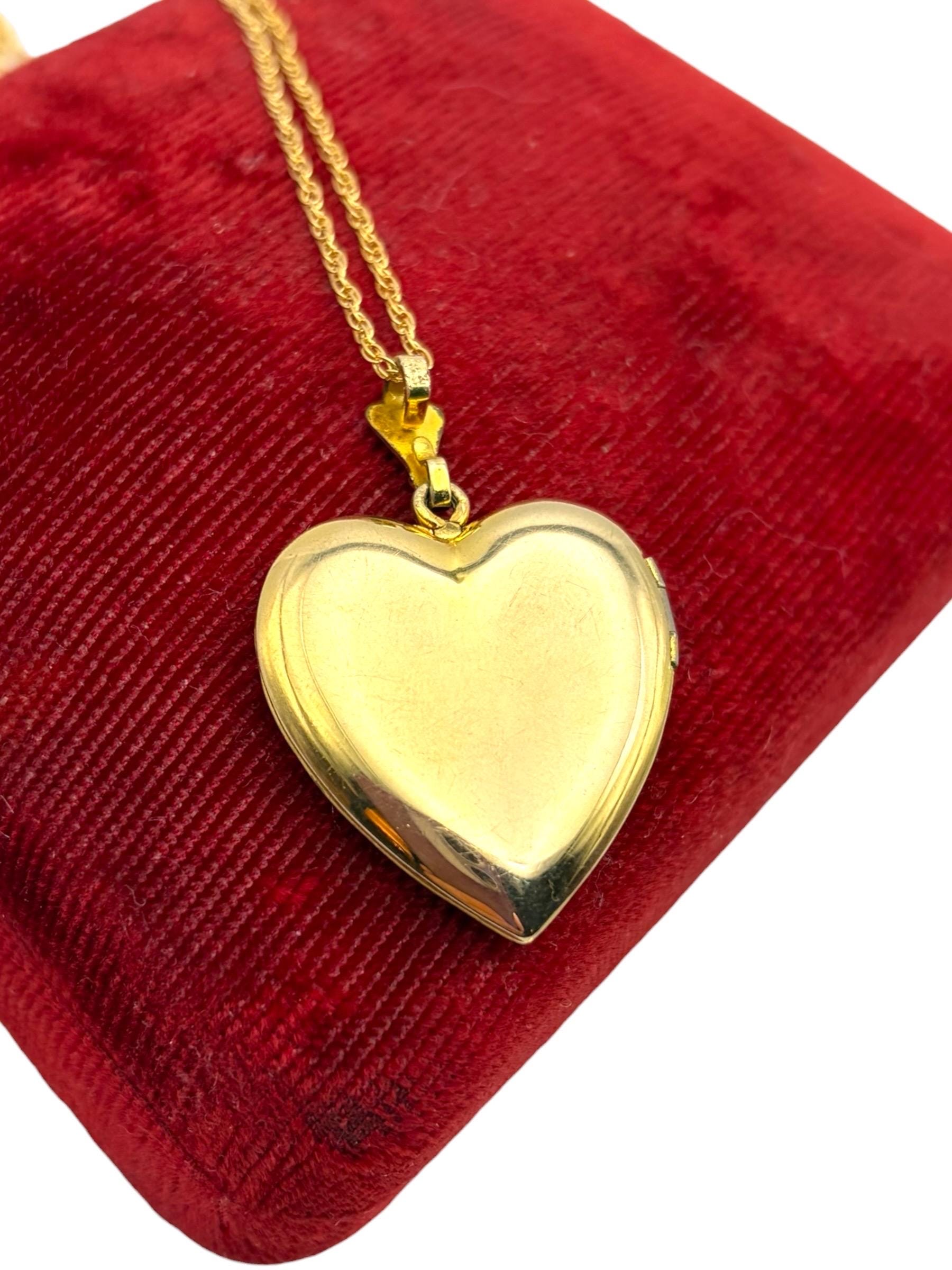 The vintage locket hangs from a new 20'' 14K gold filled rope chain. The locket can be purchased with or without the chain.