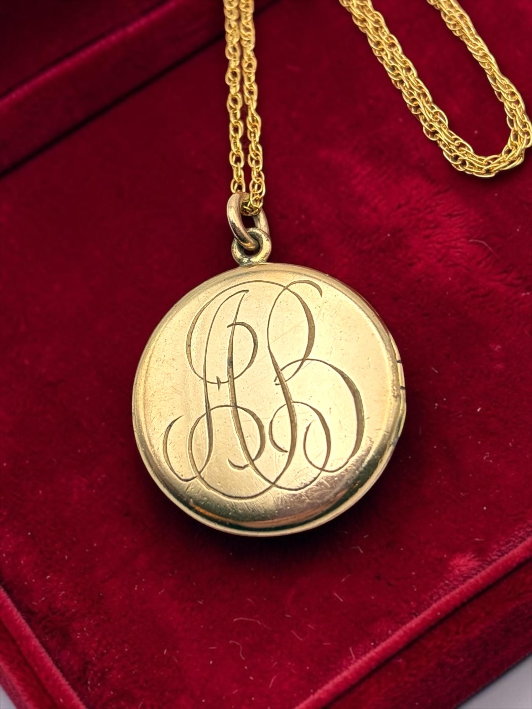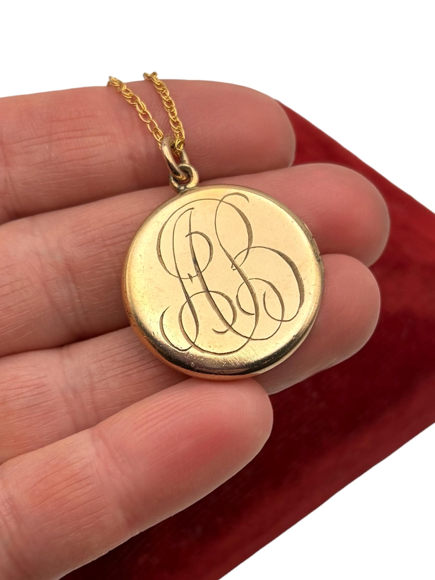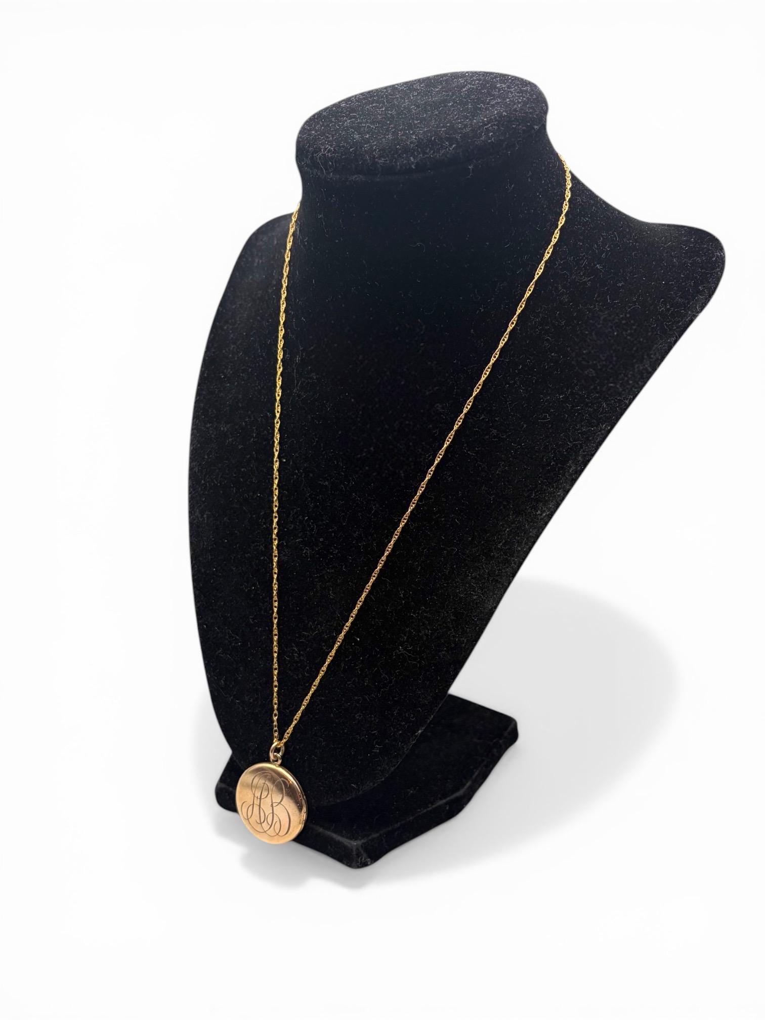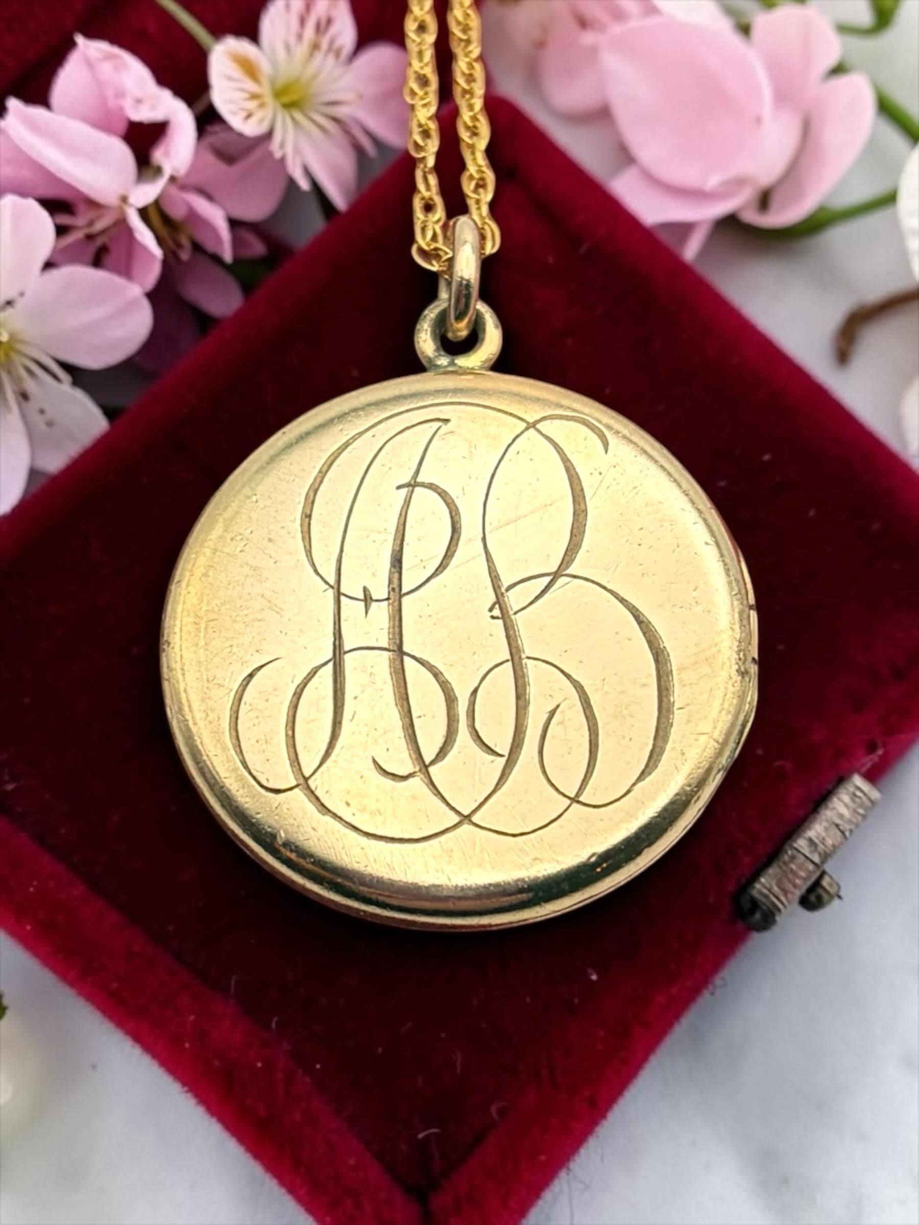 Antique Gold Filled Locket Necklace – Monogram AB BJ, Edwardian Photo Pendant (20" Chain)