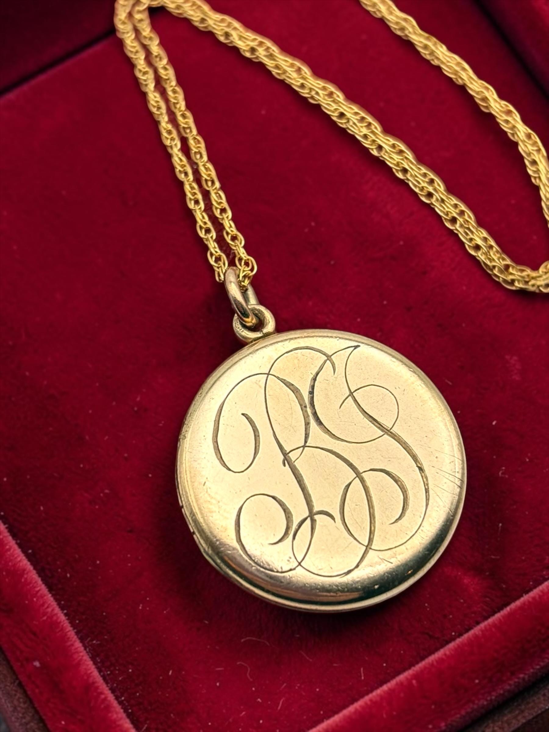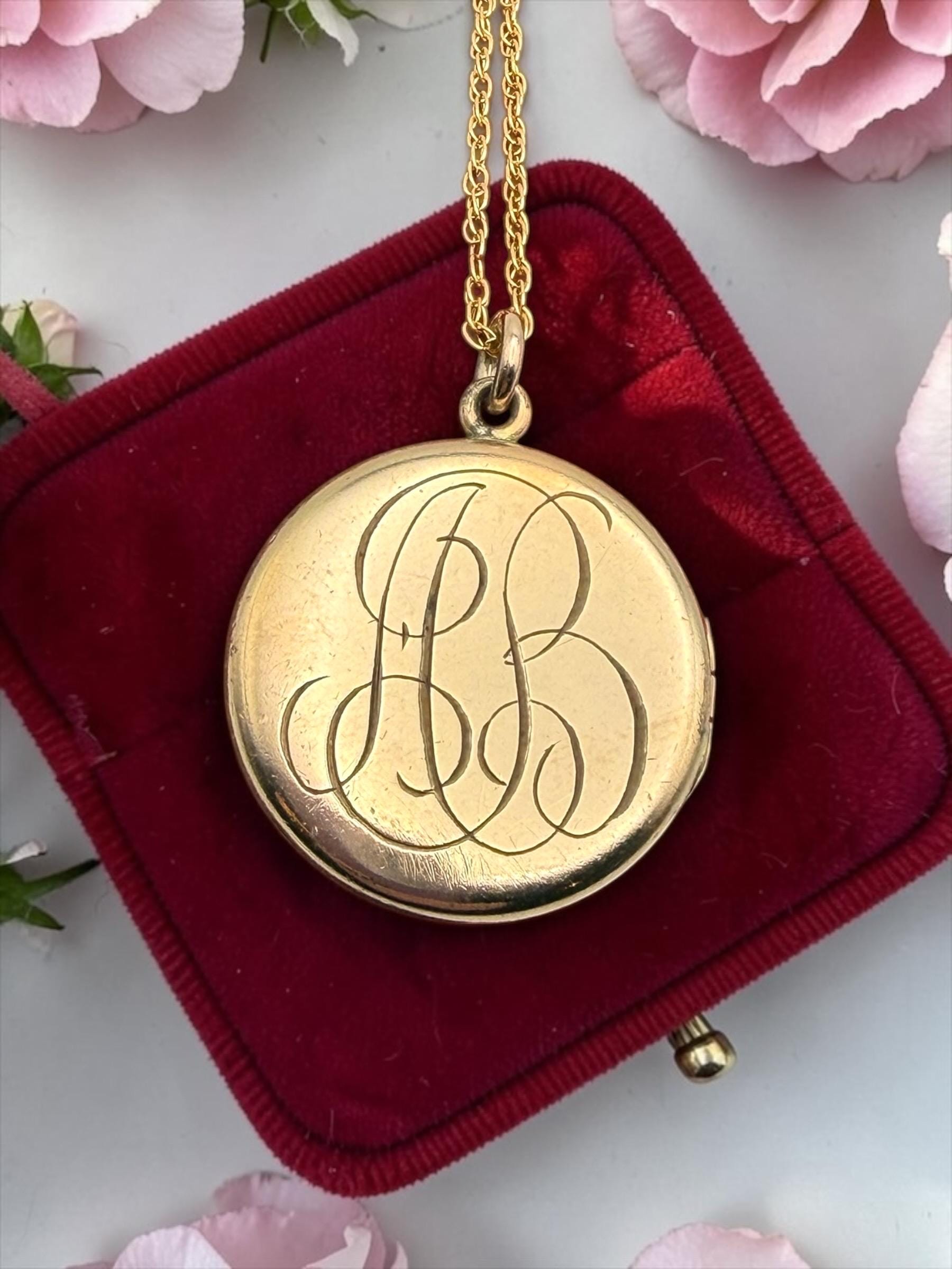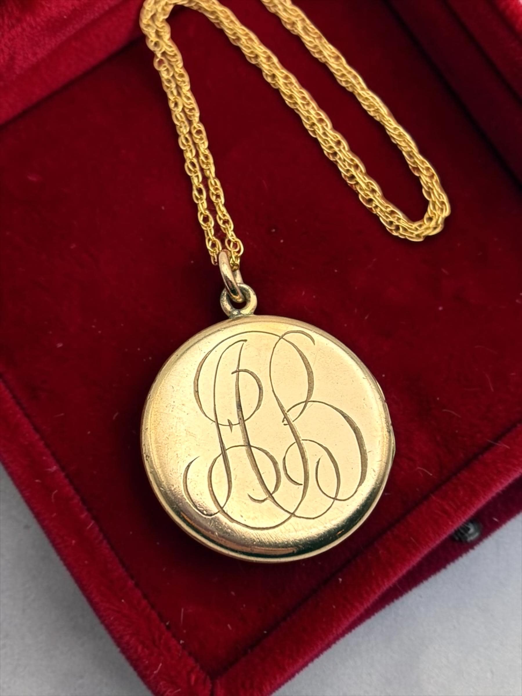 Antique Gold Filled Locket Necklace – Monogram AB BJ, Edwardian Photo Pendant (20" Chain)