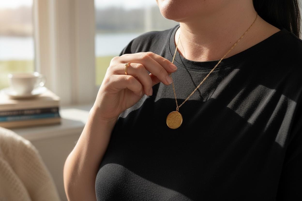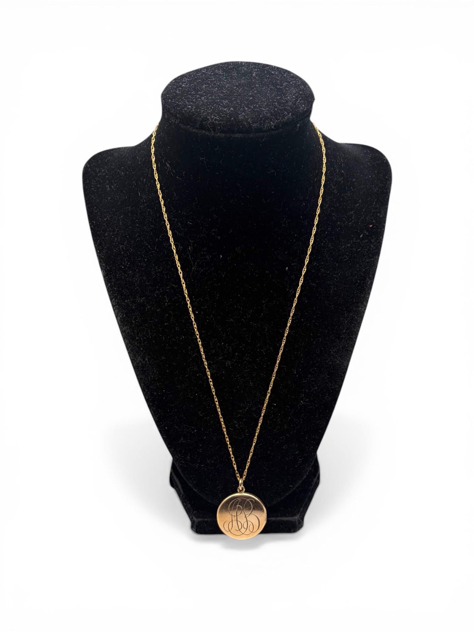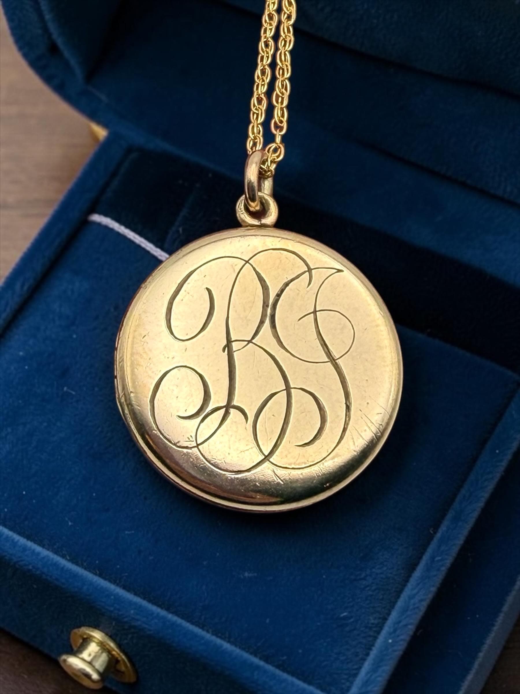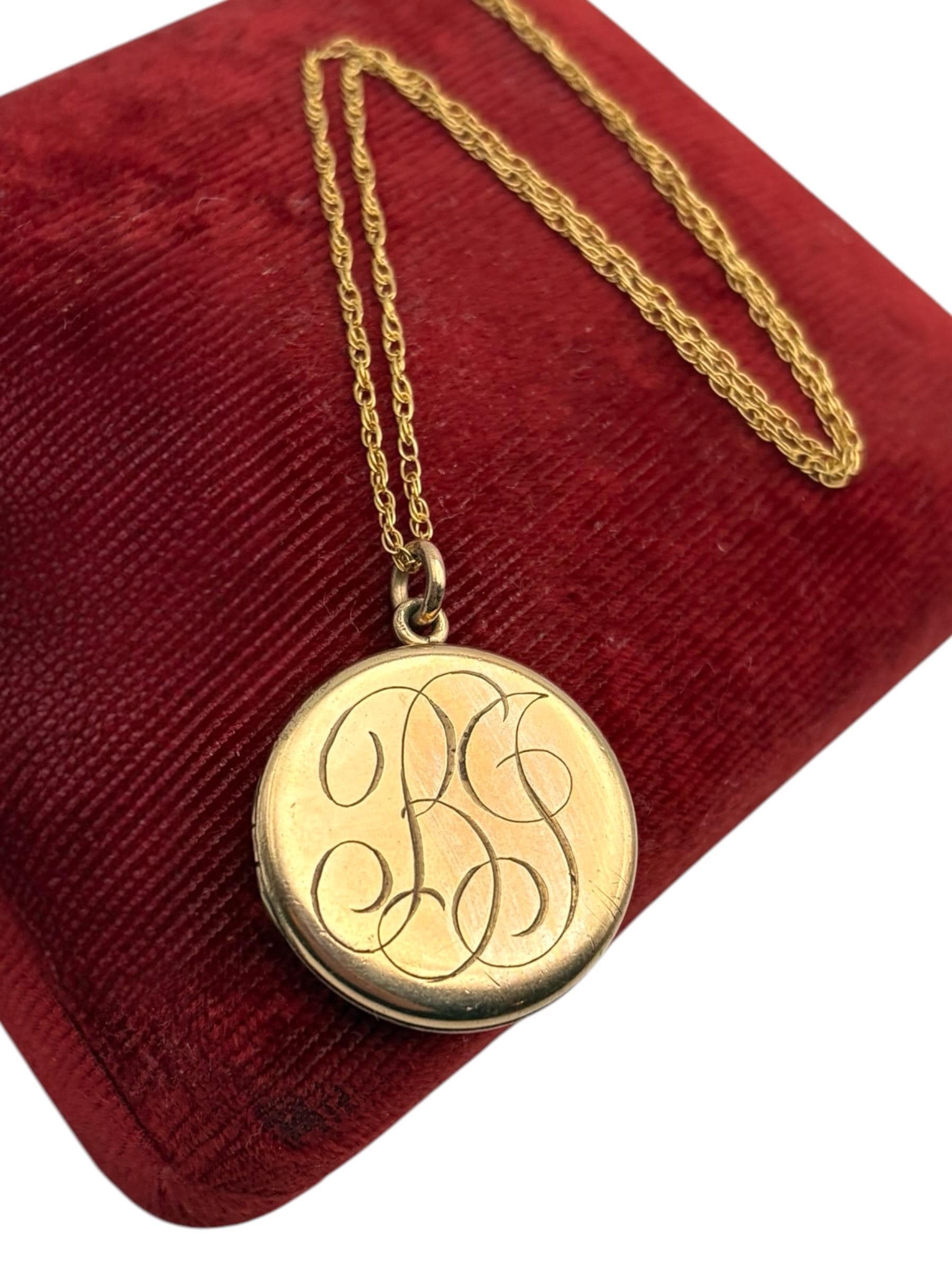 Antique Gold Filled Locket Necklace – Monogram AB BJ, Edwardian Photo Pendant (20" Chain)