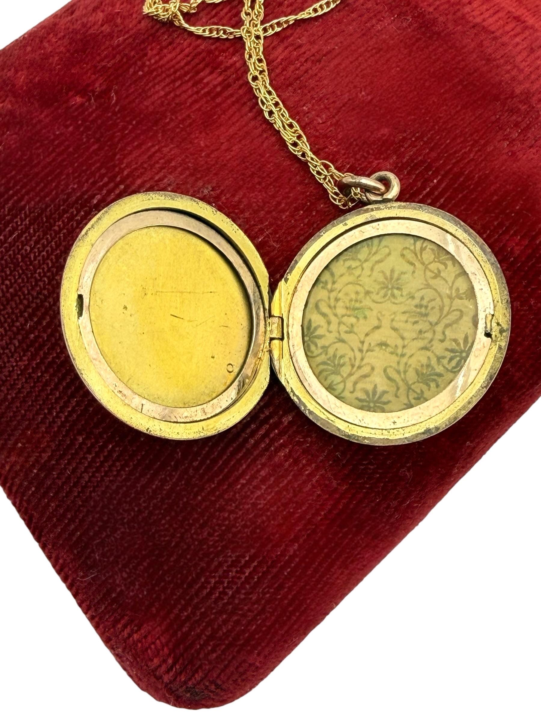 The antique photo locket hangs from a new 14K gold filled rope chain that is 20” in length. The locket can be purchased with or without the chain.