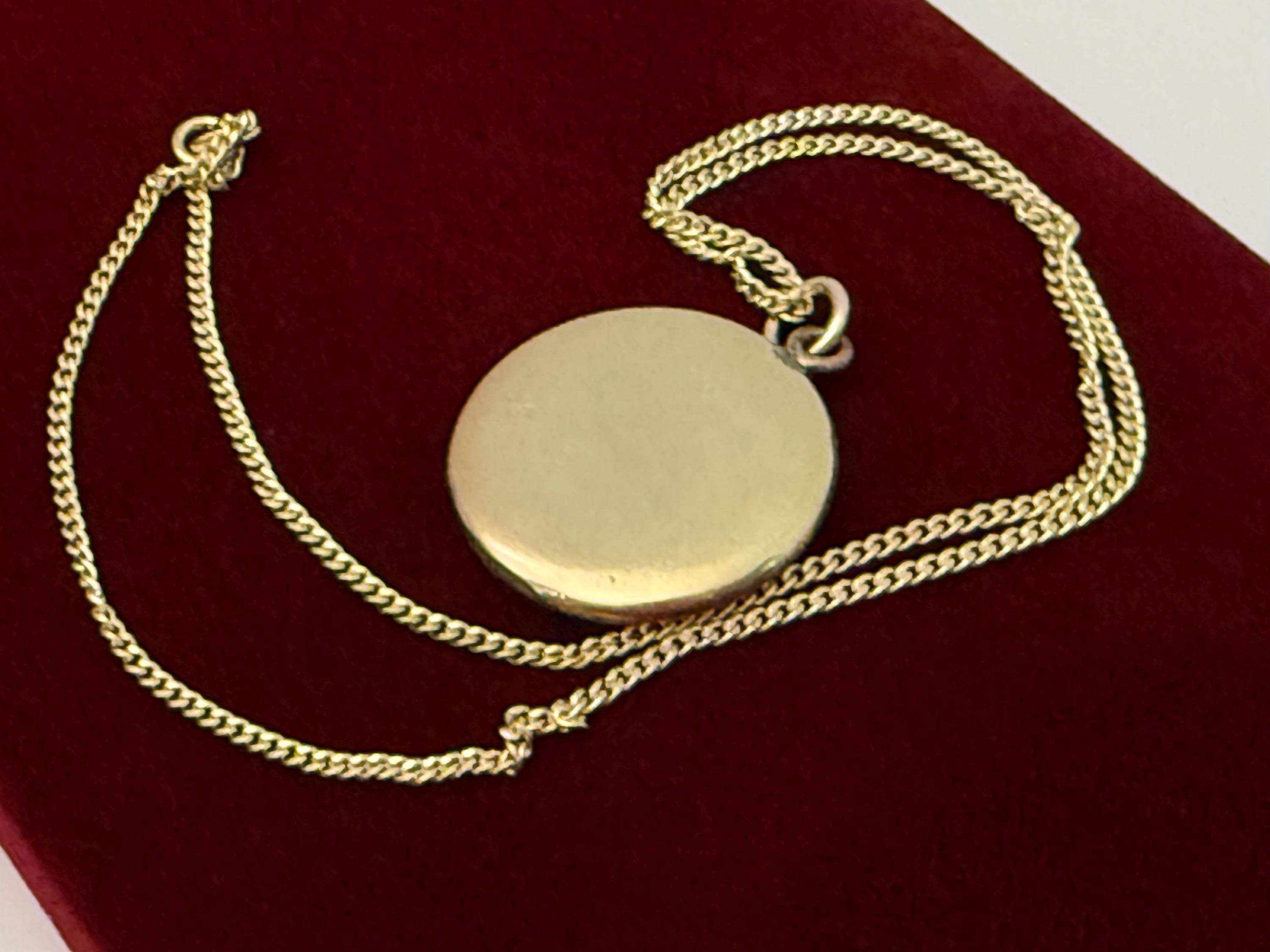 The other side of this locket is plain with no design. The locket closes securely. The spring ring clasp on the new 14K gold filled curb chain also closes securely. The locket can be purchased with or without the new 14K gold filled curb chain.