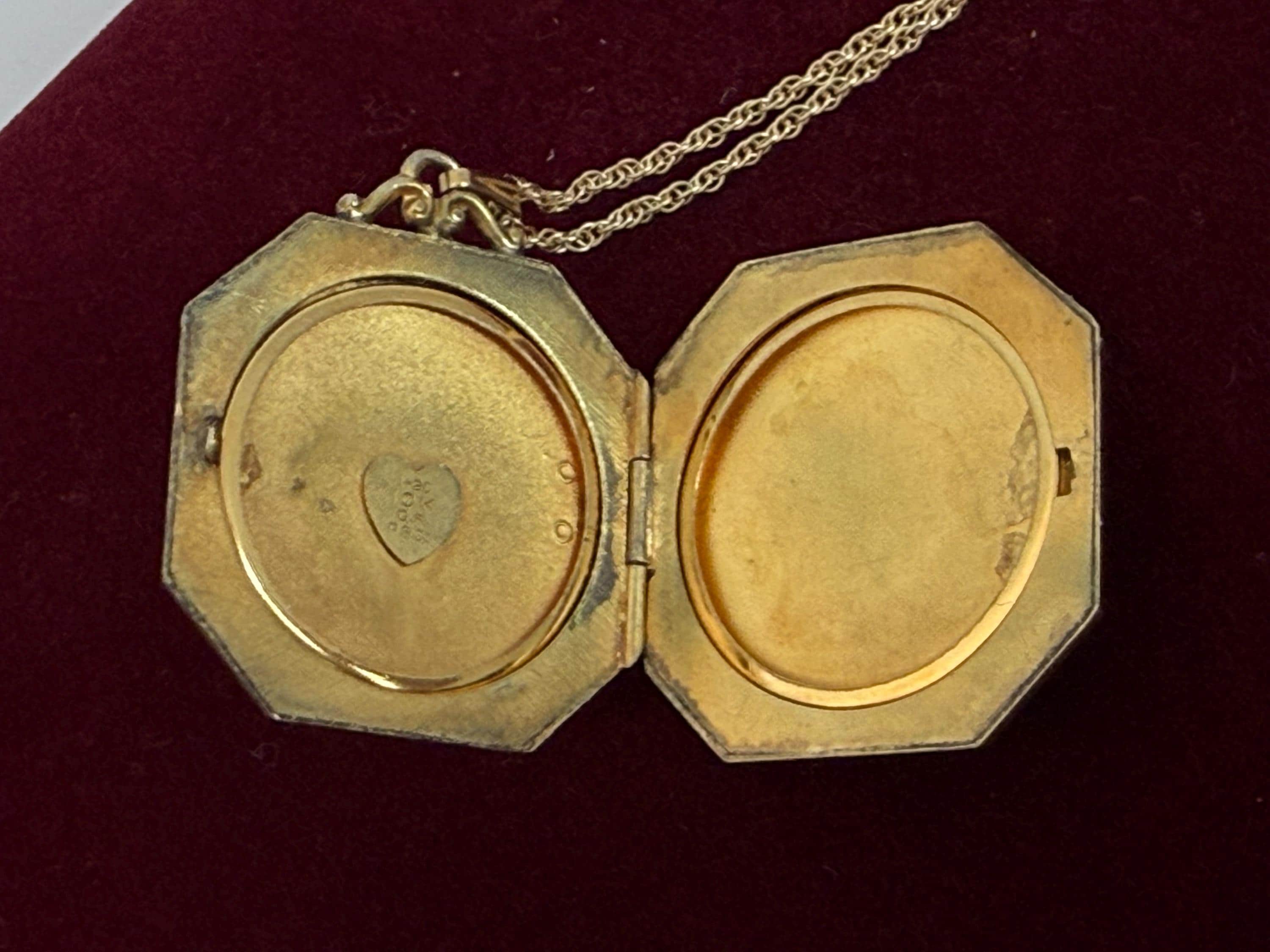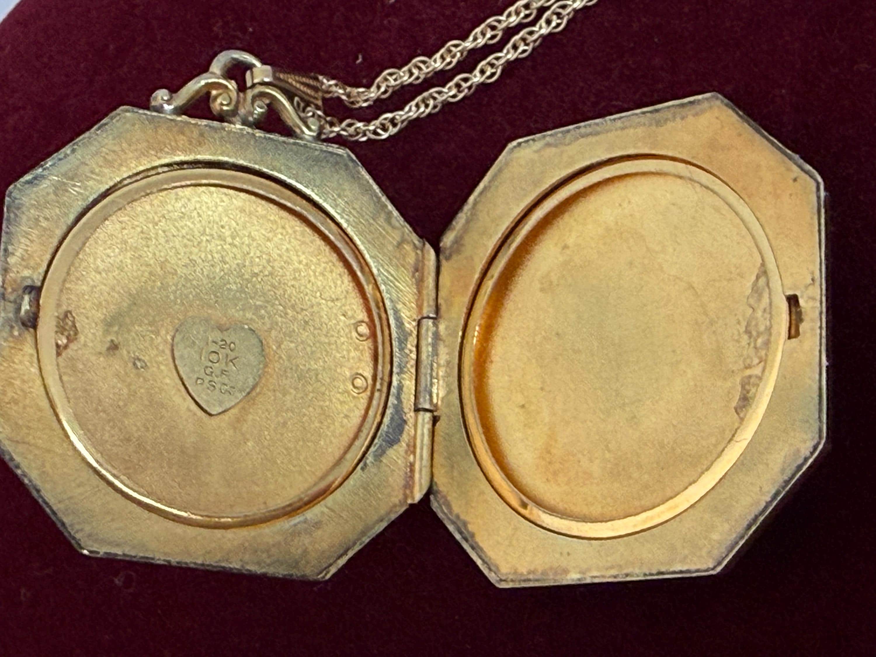 The locket is marked 1/20 10K GF PS CO on one inner well.