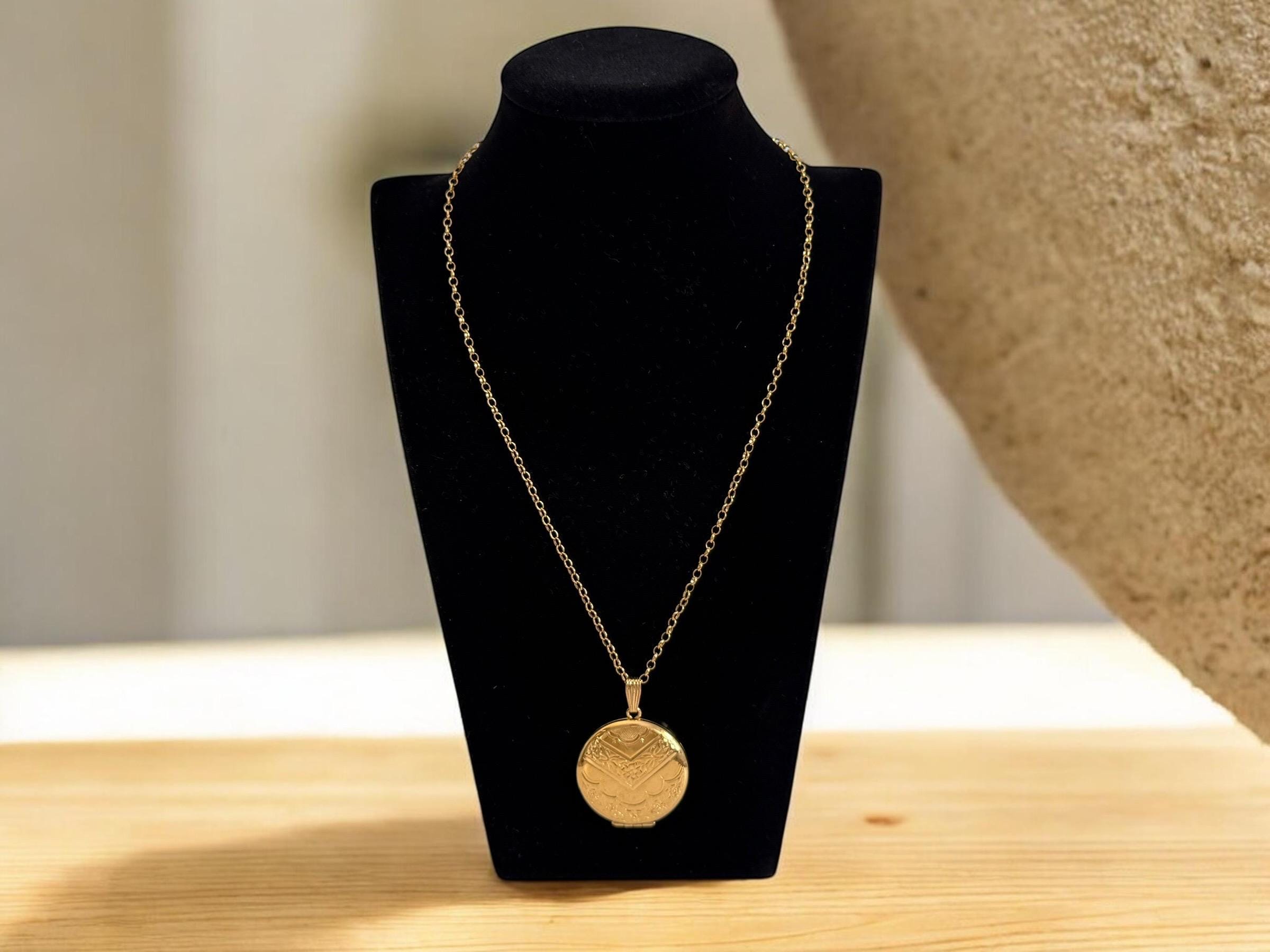***Note: the last photo shown is AI generated and does not represent the exact design and style of the locket, but its general appearance. Photo gives inspiration as to how the piece can be worn or displayed!***