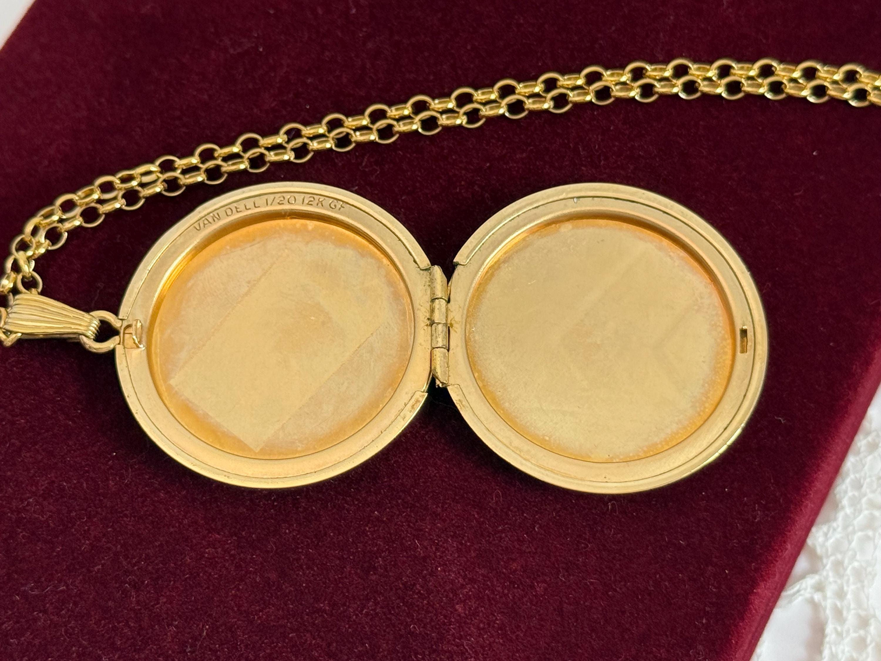 The locket is marked on the inside VAN DELL 1/20 12K GF.