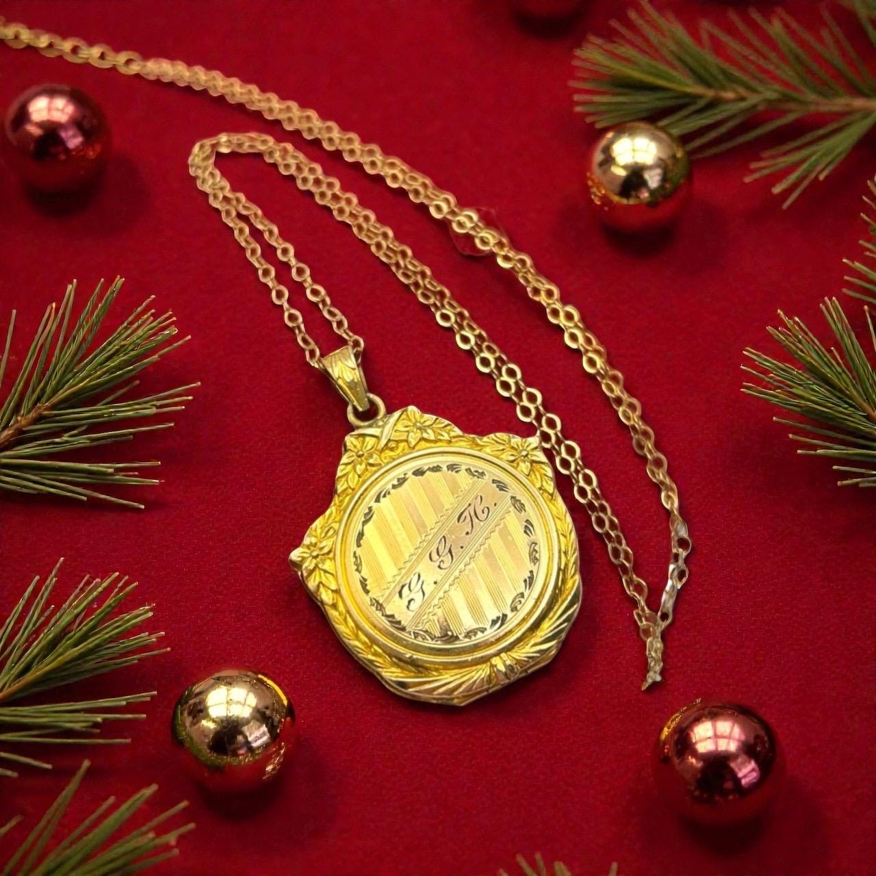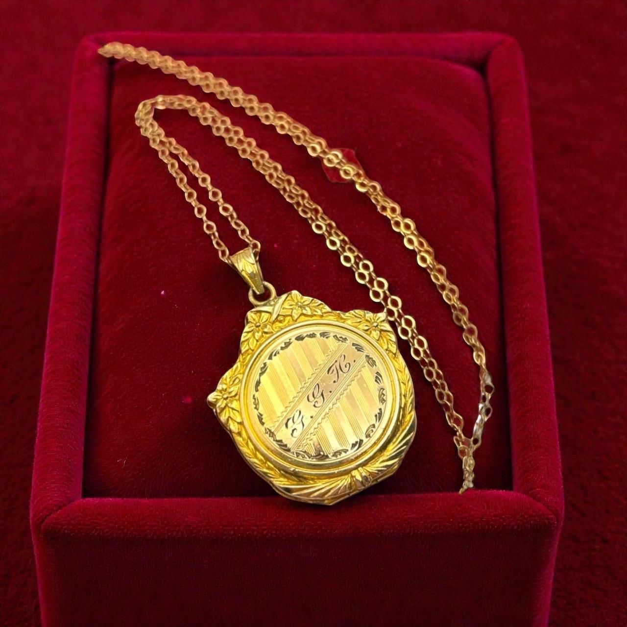 Vintage Hayward 12K Gold Filled Locket: Floral Monogram, 14K GF Chain