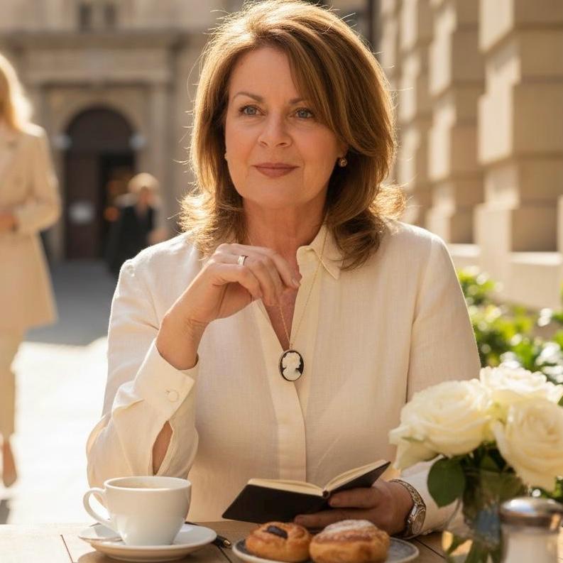 The cameo has an off-white/white carved top surface while the lower layers of this banded stone are a brown, white and rust brown in color.